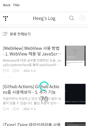 - onPageStarted, Finished에 progress를 보여주고 숨기는 작업을 추가해 주었다.