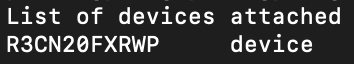 정상적으로 입력이 끝났다면, 다시 adb devices 명령어를 실행시켜 보면 위와 같이 ip주소와 포트 번호로 이루어져 있는 연결된 기기를 확인할 수 있을 것이다.