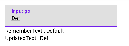 TextField에 입력한 값을 textState에 갱신하면서 저장하고, 해당 값을 RememberUpdateTestText에 넣어서 Text로 보여주도록 하는 부분이다.
