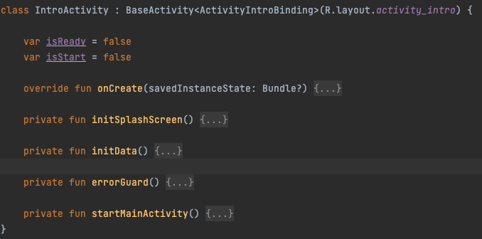 기존에 MainActivity를 Launcher로 사용하고 있었는데, IntroActivity를 만들고 Launcher로 설정 후 startMainActivity를 통해 MainActivity를 호출하도록 하였다.
