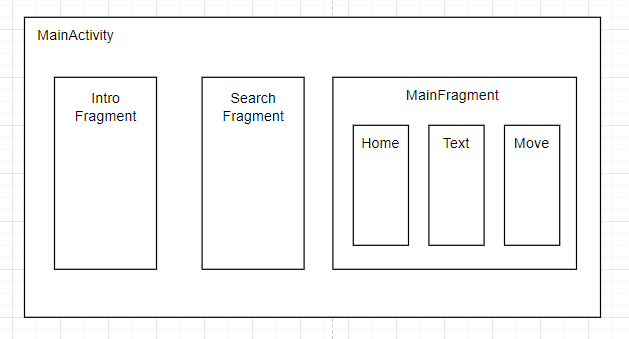현재 예제의 구조는 모듈로 각 Fragment가 나뉘어 있지만, Activity 측면에서 보면 이런 구조를 보이고 있다.