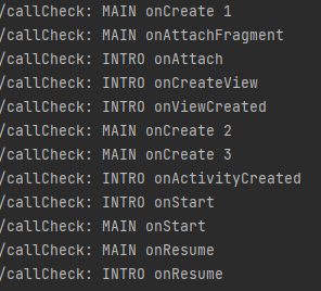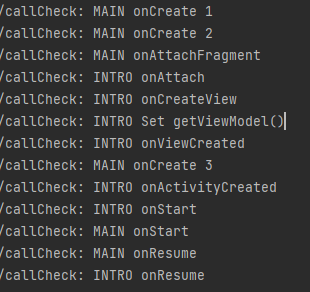 호출 순서는 위와 같을지 몰라도, 작업이 끝나기 전에 다른 프로세스가 호출된다면 viewModel에 대한 의존성 주입이 onCreateView에 했을 때 문제가 생길 수 있다고 생각하였기 때문에 위처럼 중간중간에 로그를 찍어서 확인해 보았다.