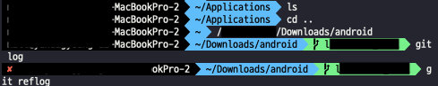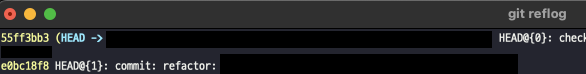 터미널의 이름을 보면 알 수 있듯이 git reflog를 사용한 결과이고, 데이터는 가장 최근 커밋 및 체크아웃되어있는 데이터가 위, 아래로 갈수록 과거의 커밋이 보이게 된다.