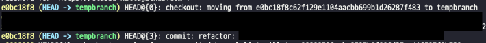 이처럼, 기존 Head에 들어가 있던 커밋도 tempbranch로 변경된 것을 확인할 수 있으며, 해당 커밋이 tempbranch로 이동되었다는 로그까지 확인이 가능하다.