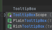 따라서, 뭔가 tooltip을 위의 UI 디자인이 아닌 다른 디자인으로 커스텀해서 쓰고 싶다면 RichTooltipBox를 사용하기보다는 PlainTooltipBox를 사용하는 게 좋아 보인다.