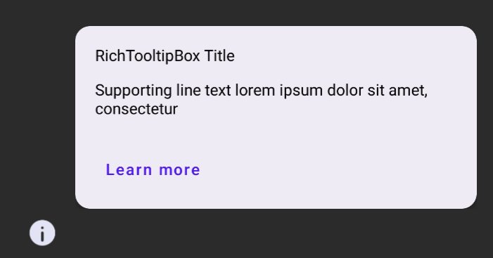 동일하게 PlainTooltipBox로도 구현이 가능하지만, RichTooltipBox의 경우 title, description, text button의 조합을 가지고 있는 케이스에서 쉽게 사용할 수 있도록 구현해 둔 것이다.
