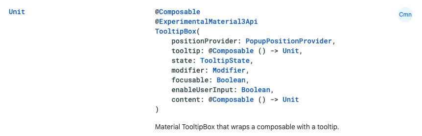 - tooltip : 툴팁이 활성화되었을 때 보여줄 Compose 함수.