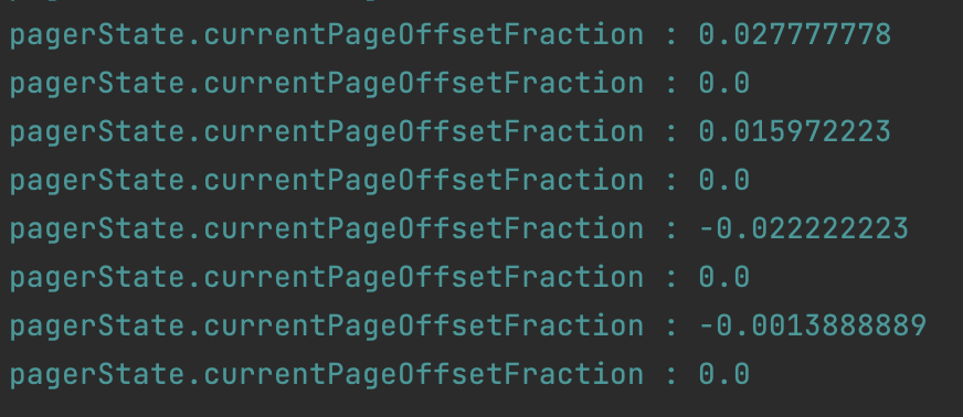 따라서, currentPageOffsetFraction 값을 사용하는 것을 선택하였는데, 해당 값은 현재 페이지가 움직이는 offset 값을 알 수 있다.