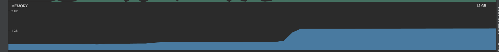 그렇기 때문인지 해당 작업을 시작하고부터는 1.1gb의 메모리를 사용하고 있다.