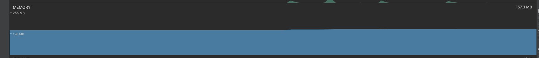 뭐 단순한 기능들의 샘플밖에 없기도 하고, 메모리를 잡아먹을만한 것들이 아무것도 존재하지 않기 때문에 이처럼 평균적으로 160mb 정도의 메모리를 사용하고 있었다.