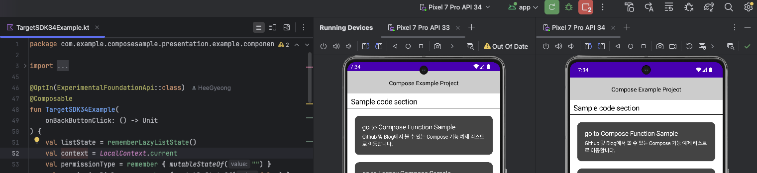 targetSDK를 34로 올렸을 때 os 버전이 33이냐 34냐에 따라서 다르게 동작하는데, 이것을 확인하기 위해서 실 기기와 에뮬레이터를 각각 하나씩 다르게 연결해서 보고, 왔다 갔다 체크하기가 여간 귀찮은 일이 아니었다.