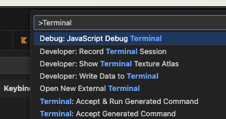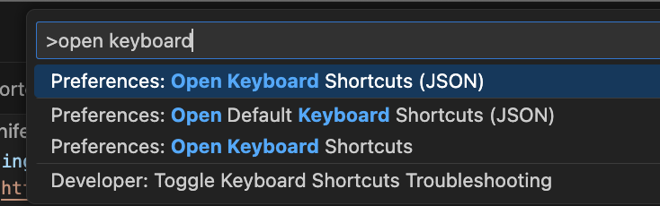 해당 input에 >를 작성하면, keybinding이 되어있는 항목들이나 extension에 의해 사용이 가능한 기능들이 나열되게 된다.