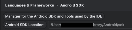 SDK 위치까지 넣고 저장하게 되면, 이처럼 Android SDK로 설정이 되는 것을 확인할 수 있다.