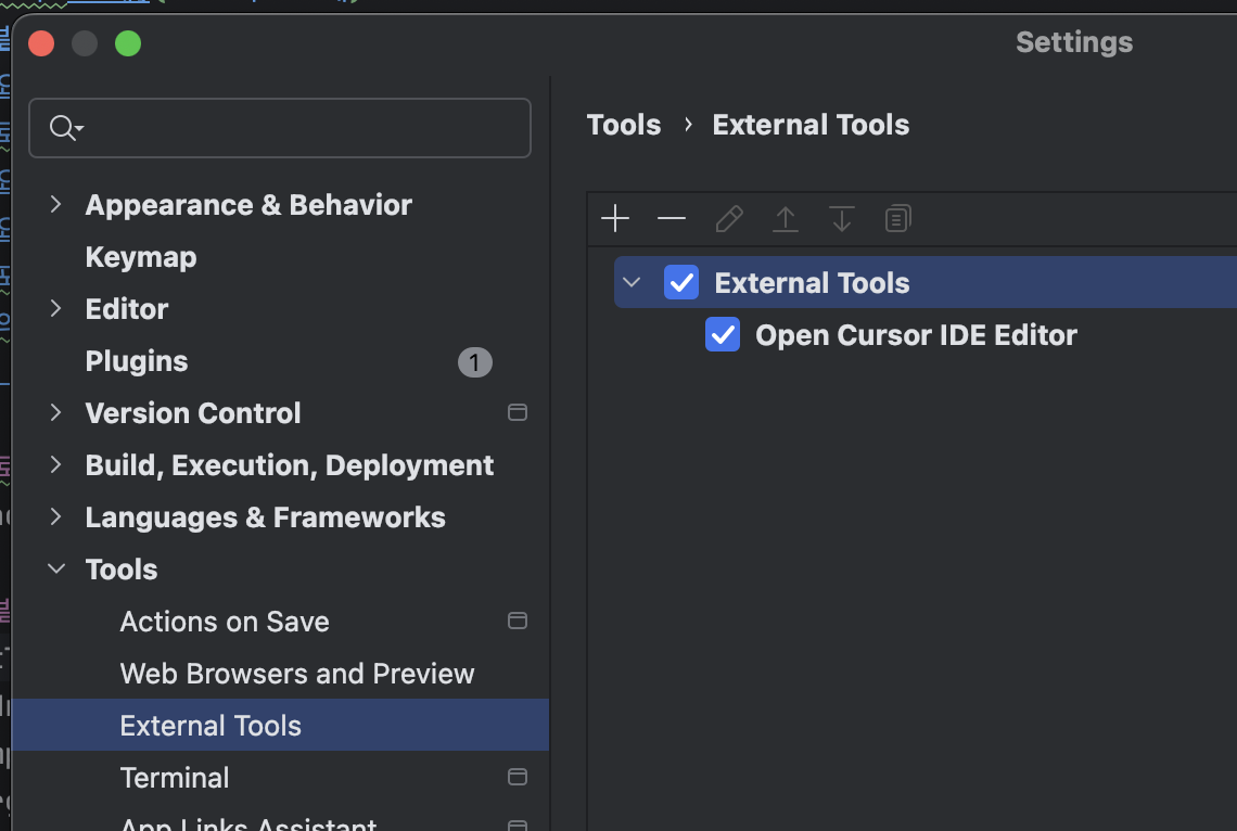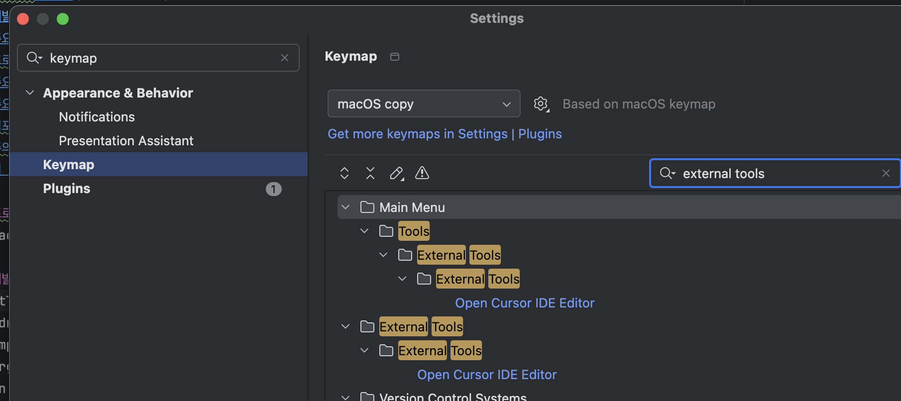 - Keymap > External Tools 검색