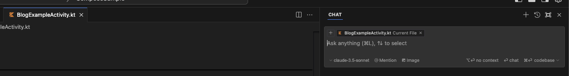 여기서 다른 부분은 한가지가 더 있는데, cmd + L 을 눌렀을 때는 상단에 CHAT이라고 나오지만, CMD + I를 누르면 Composer라고 나오게 된다.