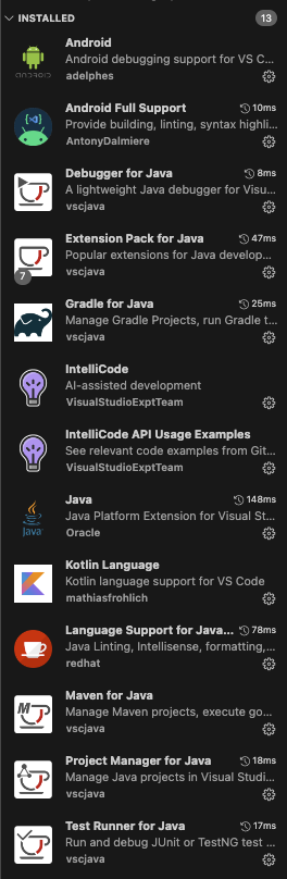 1번과 2번 Extension은 설명을 보면 알겠지만, 디버그를 도와주고 빌드를 도와주고 등등 안드로이드 개발에 도움을 준다고 한다.