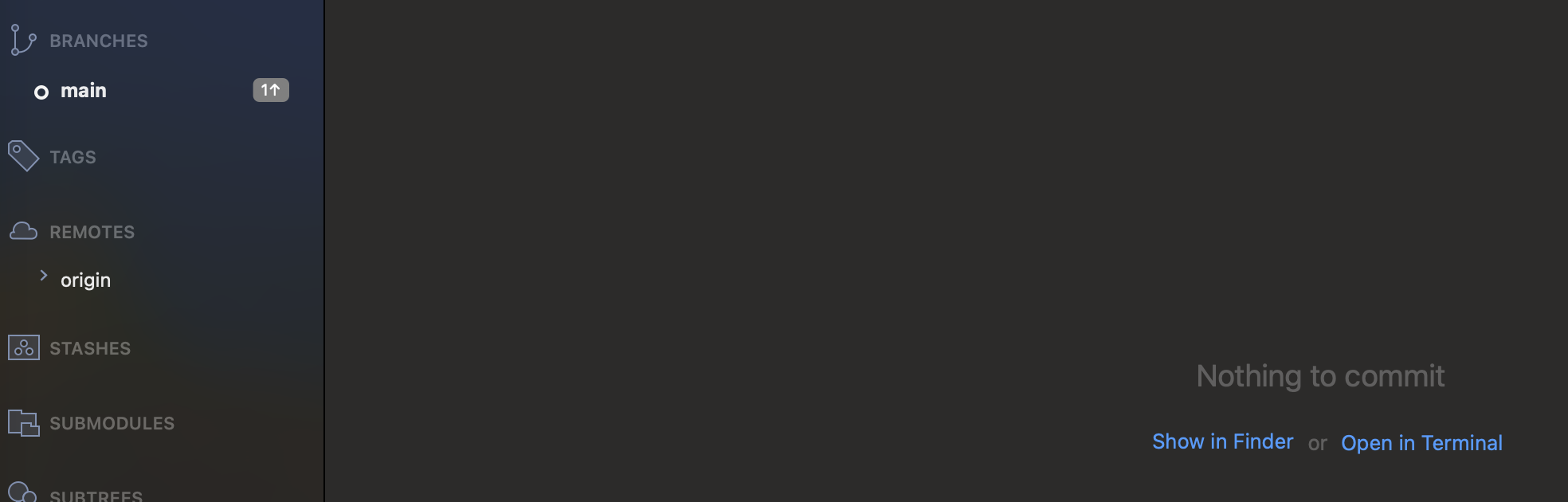 기존에 ignore가 되지 않았던 파일들이 사라지고, main 브랜치에서 1개의 push 할 코드가 생성되게 된다.