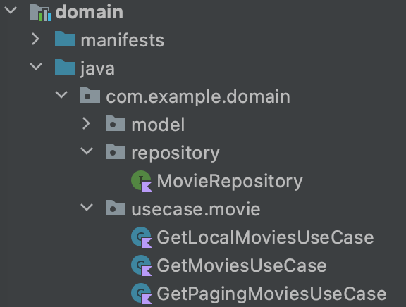 위의 Domain Layer 에 선언된 부분을 보면 UseCase 와 Repository 는 보이는데, Repository의 구현부. Impl 부분이 보이지 않는다.