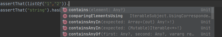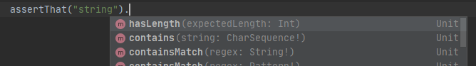 assertThat 메소드는 assertThat(object).확인할 동작 형태로 작성하면 되는데, 자동 완성 기능을 사용하여 필요한 테스팅 함수를 찾으면 된다.
