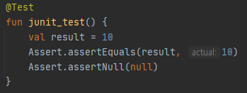 여기서 어설션이란 테스트 함수를 작성할 때 사용하는 Junit 에서 제공하는 함수이다.